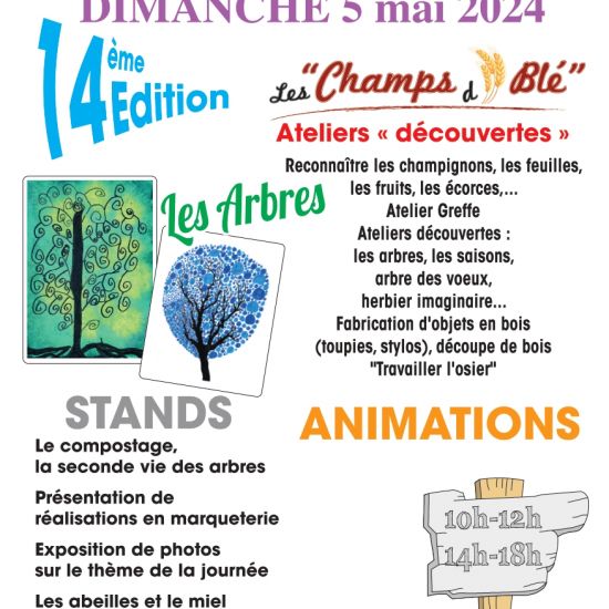 La commune de chamblet organise la 14ème édition du printemps de chamblet sur le thème des arbres le dimanche 5 mai ; ca se passe à l’école des champs de blé de 10h à midi et de 14 à 18h avec differents ateliers qui vous seront proposés, des stands et des animation