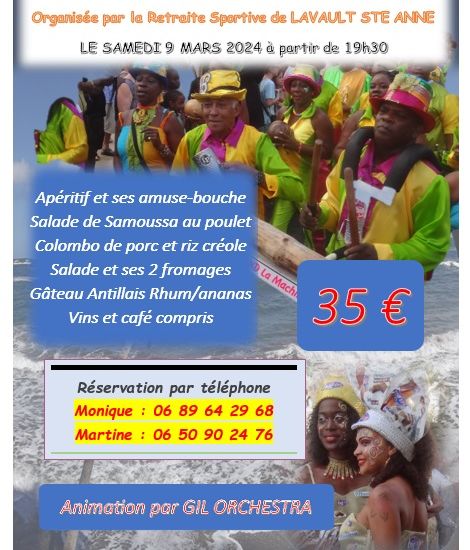 La retraite sportive de Lavault ste anne organise une soirée antillaise animée par GIL ORCHESTRA le samedi 9 mars à partir de 19h30 à la salle polyvalente