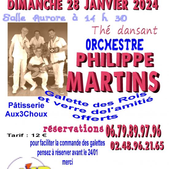 Le 1er régiment d’infanterie de st amand montrond organise son thé dansant le dimanche 28 janvier dès 14h30 à la salle aurore ; il sera animé par l’orchestre PHILIPPE MARTINS