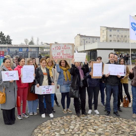 Pour un enseignement de qualité et le maintien de certaines matières menacées…des enseignants du lycée Paul Constans de Montluçon se sont mobilisés hier afin de dénoncer la diminution de nombre d’heures d’enseignement allouées à l’établissement à la prochaine rentrée de septembre.